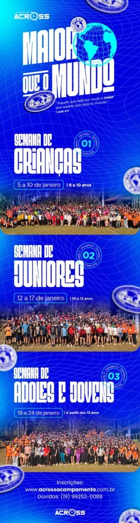 Uma colônia de férias especialmente preparada para que crianças, adolescentes e jovens tenham uma experiência viva e verdadeira com a palavra de Deus.
